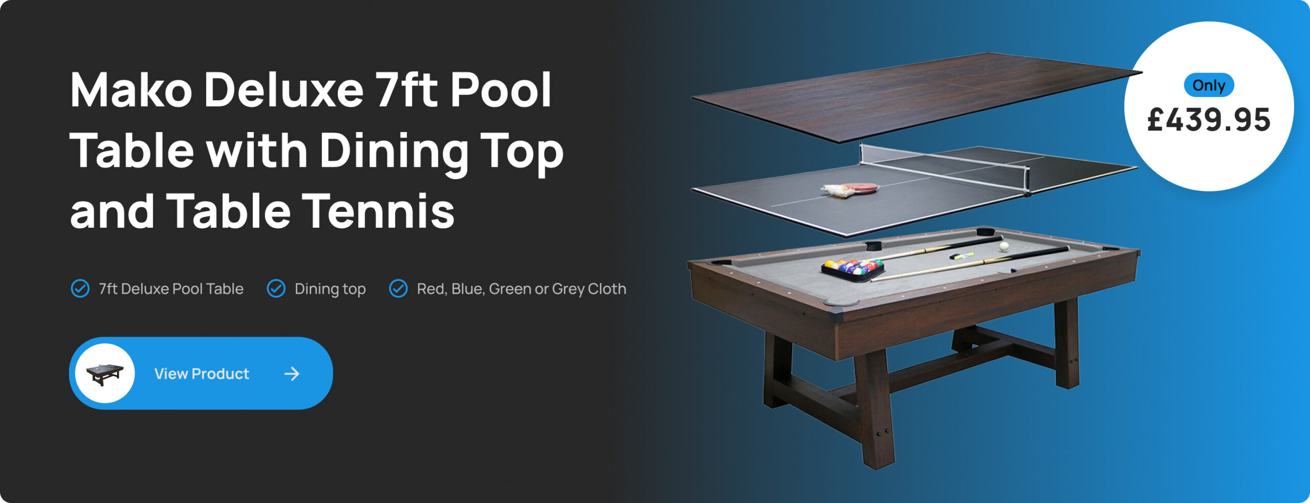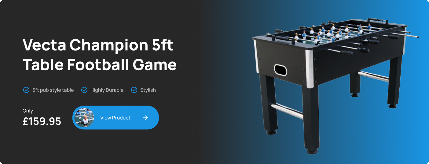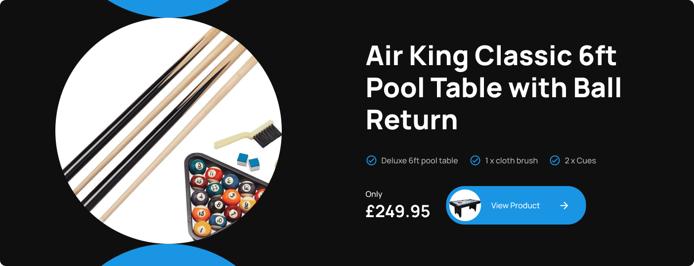 All our items are in stock in our UK warehouse which includes an extensive range of Pool, Air Hockey, Table Football (Foosball), Combination games table plus a fantastic range of Trampolines. Our prices include Free delivery to most mainland UK postcodes.