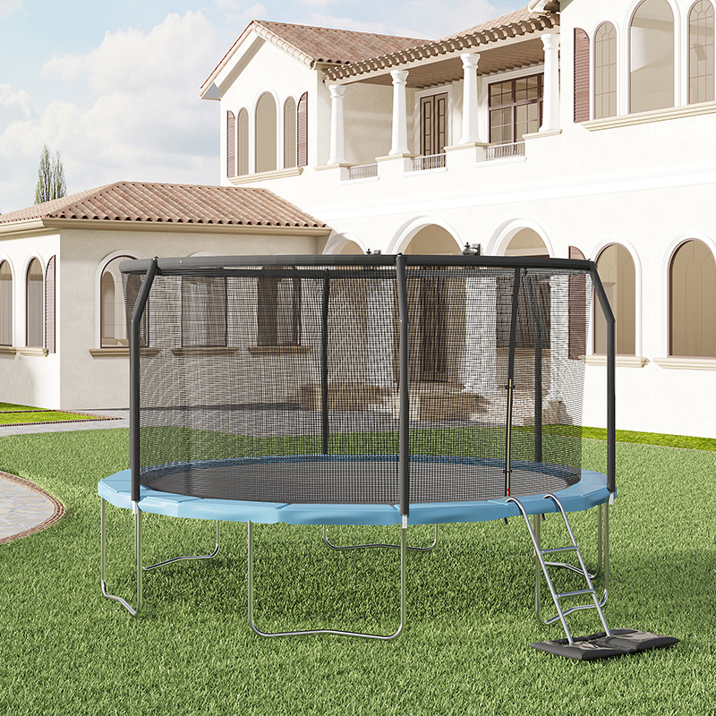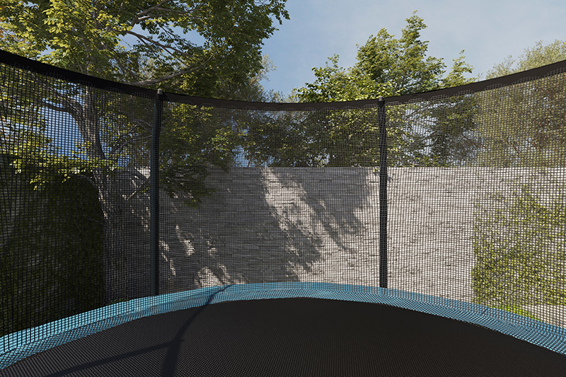 The enclosure net is securely tied to the jump mat to keep users safely inside the trampoline and also drastically reduces the chances of accidentally landing on the spring padding.