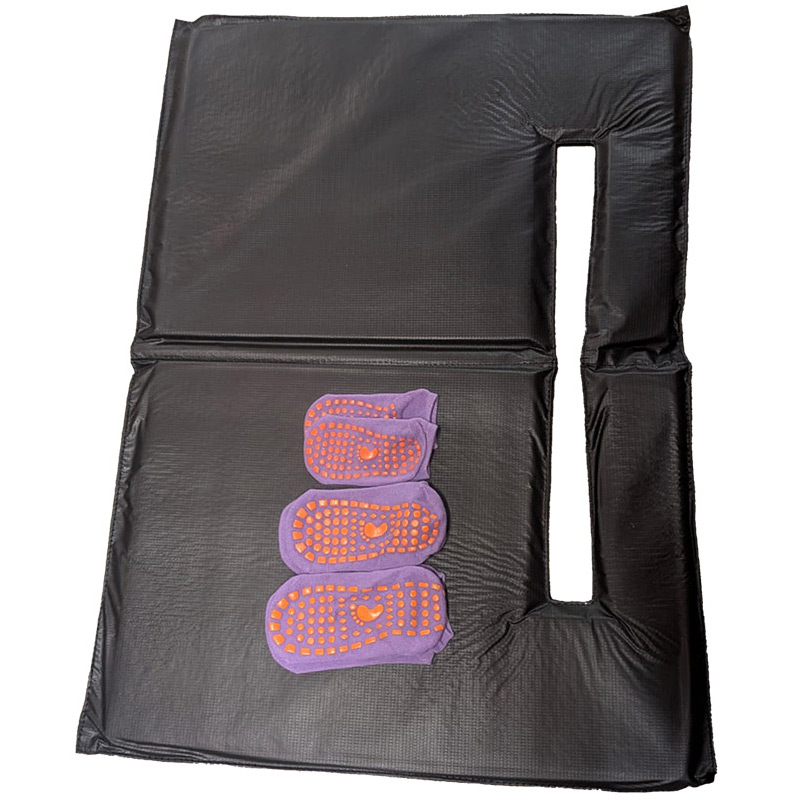 Now supplied with a FREE powder coated 3 step ladder, a padded floor mat and three pairs of grippy jumping socks as standard making this already great value package even better value for money.