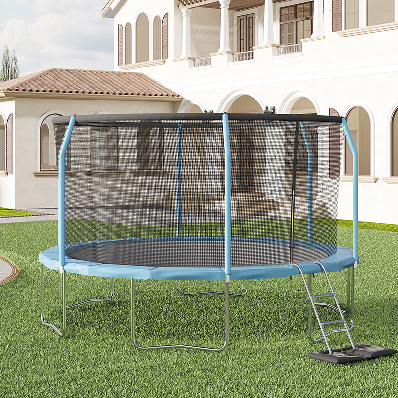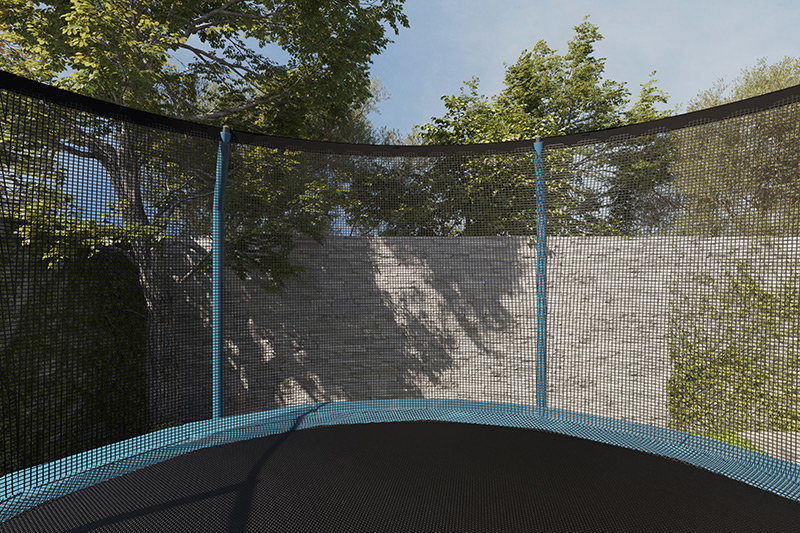 The enclosure net is securely tied to the jump mat to keep users safely inside the trampoline and also drastically reduces the chances of accidentally landing on the spring padding.