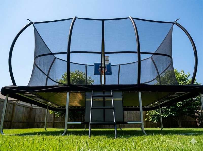 Due to their shape, rectangular trampolines have springs working at different rates providing a livelier bounce. They can also fit into a garden that might not be suitable for a round trampoline.
