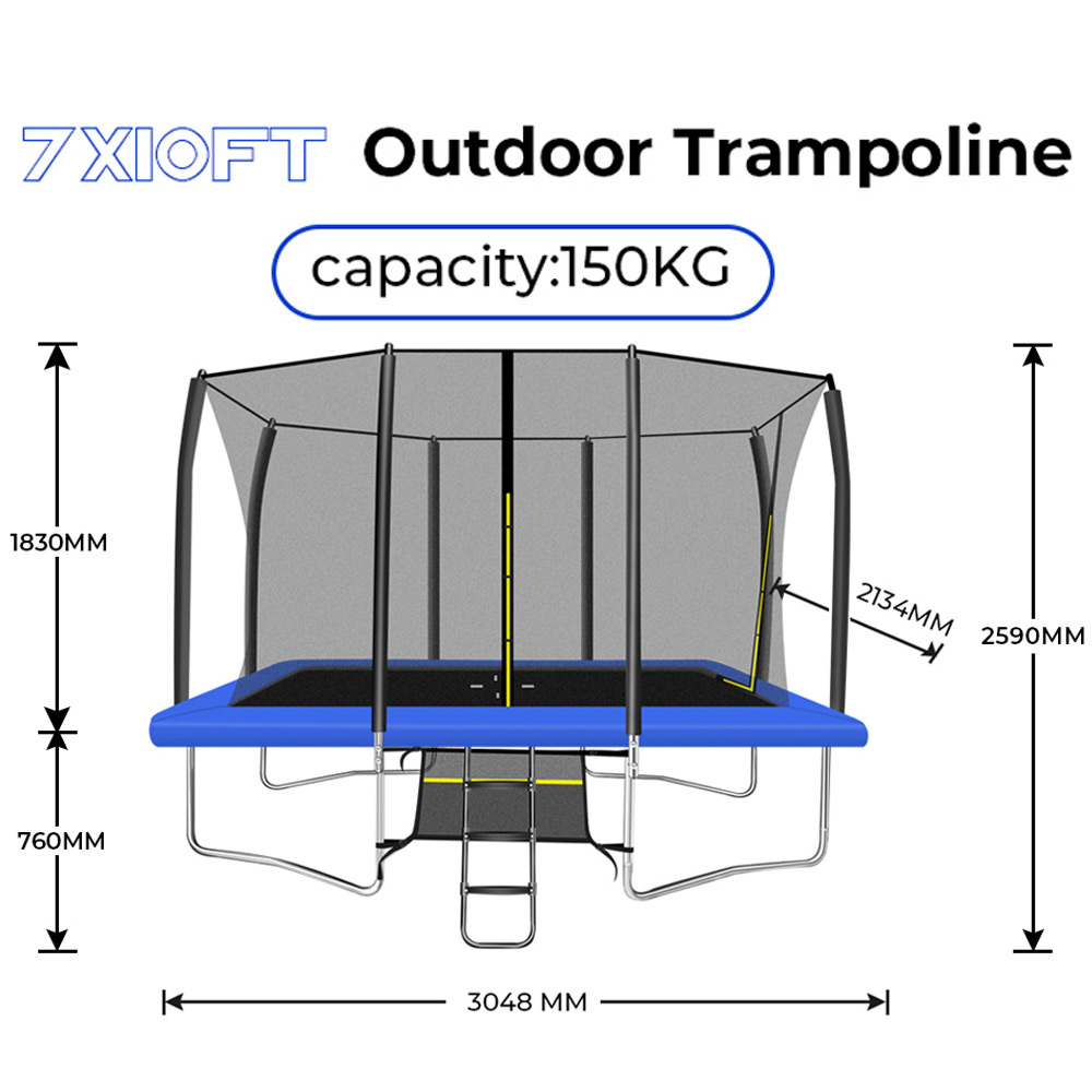 Introducing the Big Air Extreme 7 x 10ft Rectangular Trampoline;Trampolines are not just for kids, they are great fun and exercise for the whole family! Parents, teenagers and children alike can enjoy trampolining. Suitable for large families, small families, young children and old, you really can’t go wrong choosing a Big Air Extreme rectangular Trampoline as they are perfect for almost everyone.