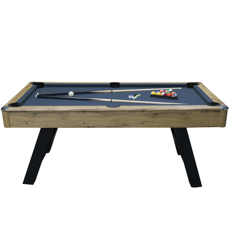The Walker & Simpson Earl 6ft Pool Table comes in a classic Oak wood grain finish cabinet, black legs and a choice of cloth colours and makes for a very elegant stylish looking table that is at home in the most contemporary of rooms. This high-quality table is constructed from MDF with Oak good grain PVC laminate finish. The table has an overall professional look which is finished by the chrome colour corners.