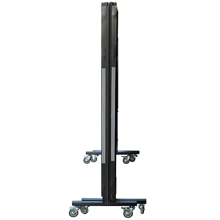 The table has a solo play mode – one half can be folded vertically for single play without a partner. The table can then be easily put into storage mode by folding the other half of the table up. Both halves of the table can then be moved independently making it simple to manoeuvre into storage.